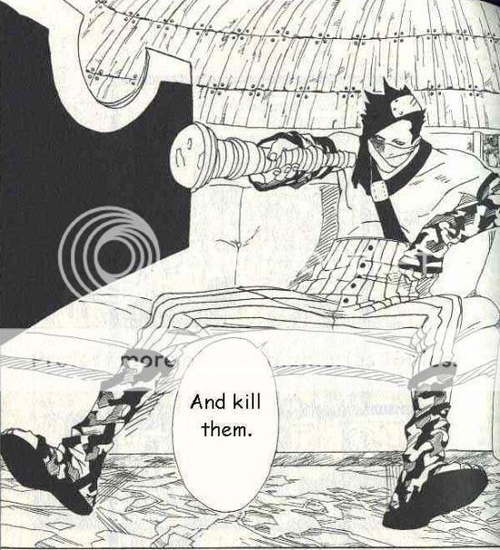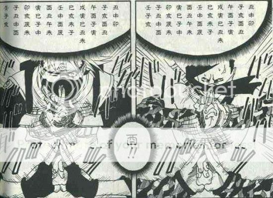 I use this as an example about the problems of moving from one medium to another. I saw this first in the anime before reading it in the manga, and this move took a good ten, fifteen seconds. At the time I thought, "Why the hell is Zabuza continuing his attack when it's obvious that Kakashi's copying it?" In the manga, this looks almost instantaneous. Because the animators had to accommodate all the seals, they created a drawn-out sequence that looks ridiculous in real time. Naruto as a series suffered a lot in the action scenes because of all the internal thoughts, which created awkward pauses. Compare that to something like Cowboy Bebop that had smooth fights without having to stop everything for a character to contemplate what to do next. It works better on page than in animation.