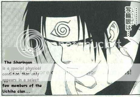 So he says, but later in the series gave me the impression that everyone and their mother could use the Sharingan so long as they tried. Also, Christ this scanlation group needs a better typesetter/editor.