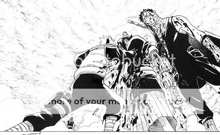 Honestly, these chapters were some of my favorites of the series. It was just a complete emotional roller coaster. You had Sasuke awakening his sharingan, him "dying," Naruto flipping his shit, Haku's sad story, and this was just the cherry on top. God, I remember when Haku lurched forward in the anime and all his fucking guts and blood just fell to the floor. They edited out Kakashi actually puncturing his body, but I think it more graphic just because of the moving blood and the sound of it splattering everywhere.