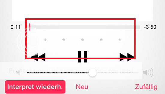 You probably can't read the German, but those pink buttons on the bottom weren't there either. From left to right, it's the repeat, create a new playlist, and randomize. Those weren't there before either; they were tiny and diagonal to the playback bar instead of right next to the volume bar, which also means I'm tapping that shit unintentionally.