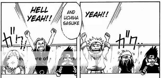I mentioned in the last post that some things are not easily transferable to animation, but conversely animation can provide things that comics cannot. For example, voice acting. I fucking loved this moment in the anime: Instead of being a little side thing whilst the focus is on Sasuke, the director gave it a scene all of its own with Takeuchi Junko perfectly expressing the confusion in Naruto's voice. I spent many times rewinding these ten seconds over and over because I found it so funny.