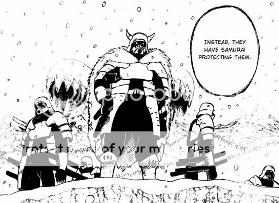 In one of the tankoubans Kishimoto discussed samurai briefly, saying because this was a ninja manga he didn't intend to have them outside of those two protecting Gatou in the beginning of the series. That's why I was surprised when he reintroduced them here.
