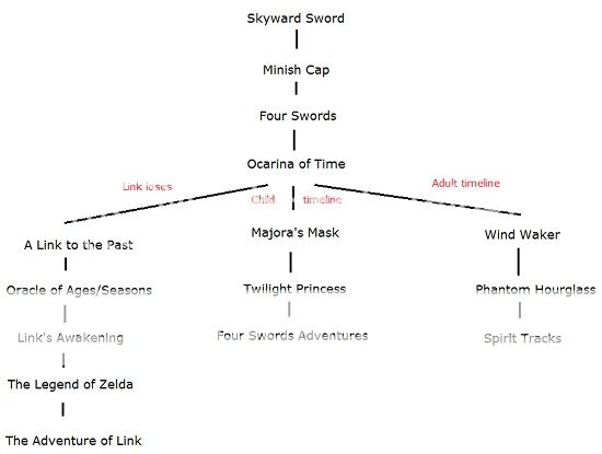 Ocarina of Time → Majora's Mask → Wind Waker → Phantom Hourglass → Spirit Tracks