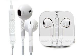 These're the headphones that come with your iPhone or iPod. (iPhone has a microphone on it to make phone calls, which aren't in the iPod version.) That part with the + and - obviously is the volume control, but that space in between the two is actually a third button. Three years ago when I got my first iPod I played around with it and discovered when you pressed the middle button once it stopped or started the music and pressing it twice would move onto the next track. Simple yet functional.