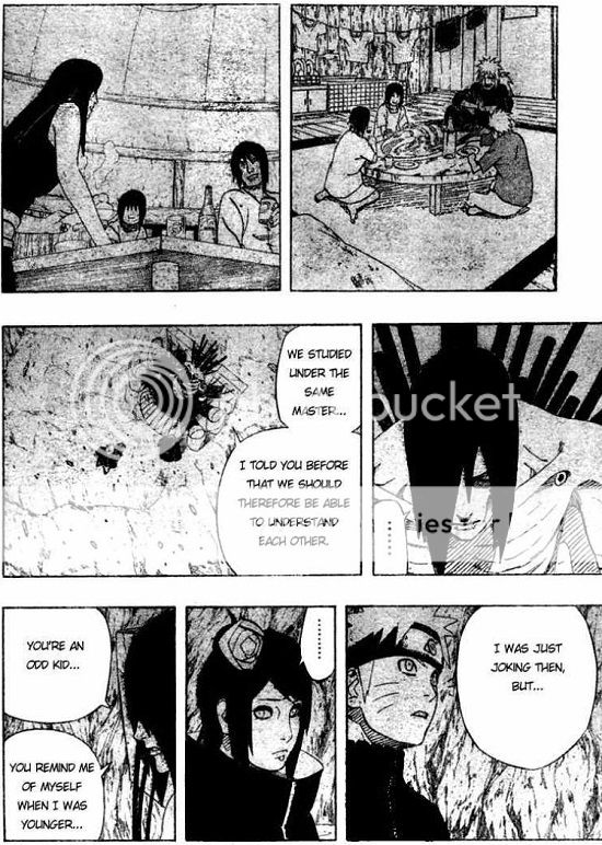 I dunno, I felt like Nagato yielded to Naruto's point of view too quickly. Admittedly there are times when people have a life-changing experience, but considering he's devoted half of his life to this path, having some sixteen-year-old stand in front of you and said with a determined look, "Trust in me, I'll stop the cycle of hatred," doesn't seem that convincing.