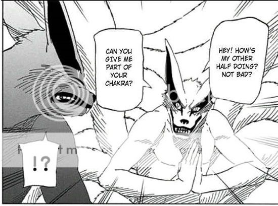 I could never fucking get over this, how Kyuubi could talk to the Kyuubi that was inside of the Fourth before his death. It created such a metaphysical crisis for me and it went on and on for so many chapters.