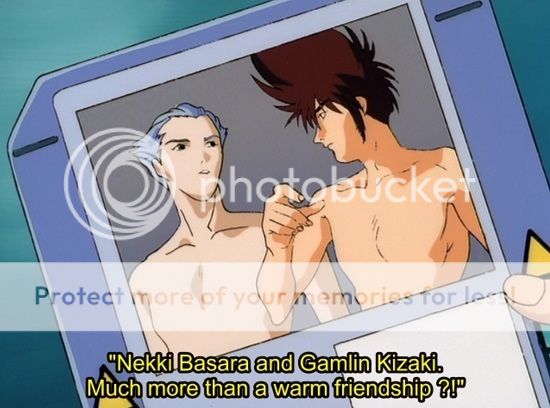 But I think the real issue is "Song Energy." You meet this crazy fucker early on in the series who says there's something specific about Minmay's music that was able to reach the Zentradi, and you write him off as some weirdo. However he's for real and eventually it comes to light Basara's music is more special than other music, and they're able to build this stuff called "Sound Blasters" and "Sound Buster" which literally fire lasers through the power of music. Other members of this band are not as good as Basara and often have to increase their "Song Energy" levels to match his performance in battle.